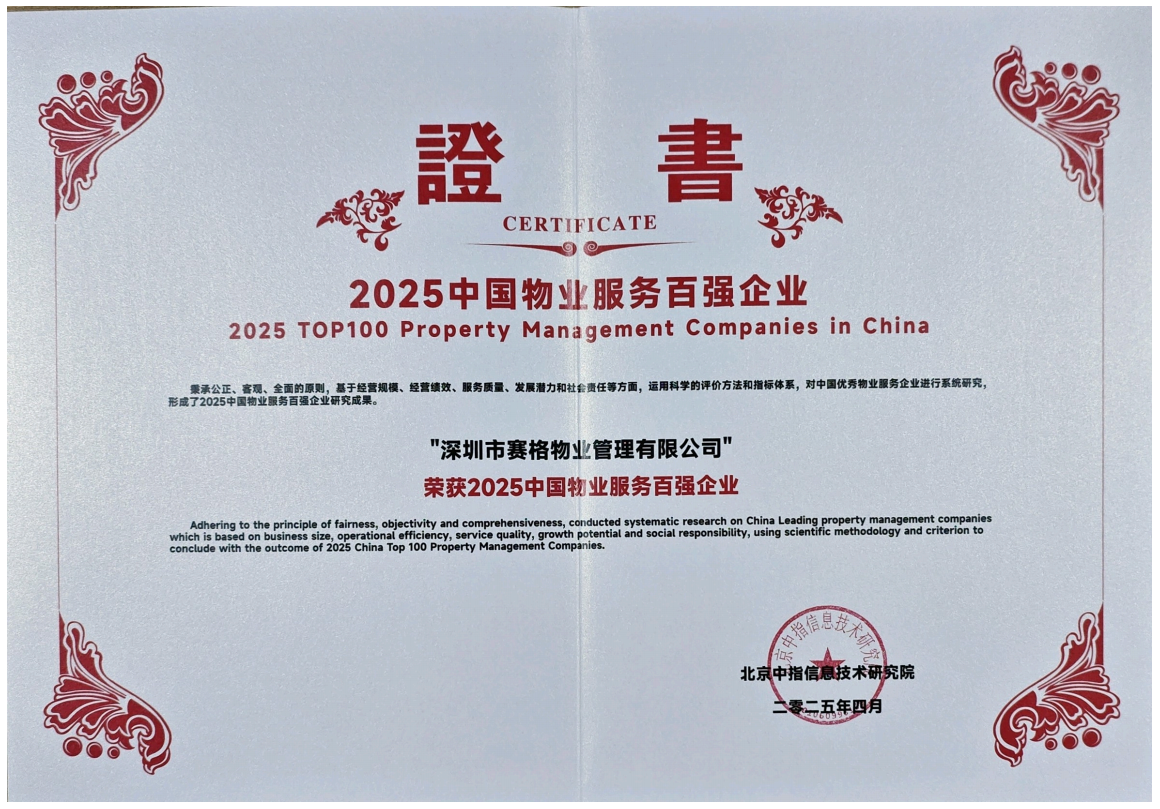近日,北京中指信息技术研究院等权威机构发布2025中国物业服务企业综合实力研究成果,深赛格旗下深圳市赛格物业管理有限公司再度跻身中国物业服务企业500强,彰显其在物业领域的深厚积淀与行业认可。